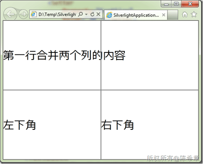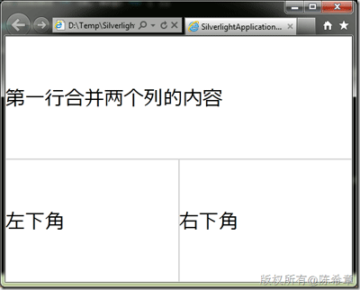 Text="第一行合并兩個列的內容" Grid.ColumnSpan="2"></TextBlock>