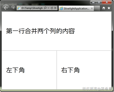 看起來不錯對吧?先不要著急,看看另外一個情況,加入我們希望把第一行的兩列進行合并(ColumnSpan)的話,會怎么樣呢?