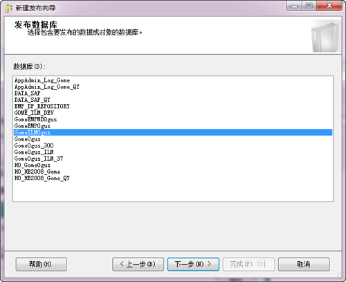 2、選擇待發布的數據庫。如下圖: