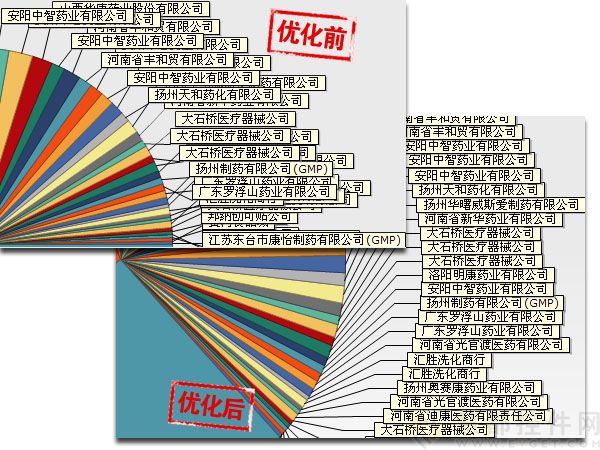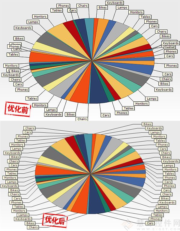 當圖表標簽密集或數量較多時,則會出現標簽重疊、標簽線交叉等問題,非常不利于圖表信息的查看。慧都科技提供的開源免費圖表標簽布局插件則可對圖表(餅圖)的標簽布局進行優化,解決標簽重疊等問題,優化布局,大大增強圖表的可讀性。您只需一句代碼,即可優化圖表標簽的布局,提高圖表可讀性。!