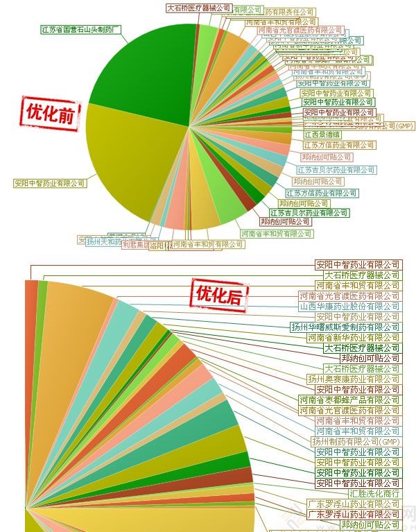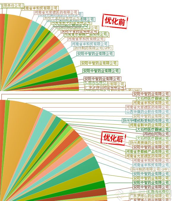 概述:當圖表標簽密集或數量較多時,則會出現標簽重疊、標簽線交叉等問題,非常不利于圖表信息的查看?;鄱伎萍继峁┑拈_源免費圖表標簽布局插件則可對圖表(餅圖)的標簽布局進行優化,解決標簽重疊等問題,優化布局,大大增強圖表的可讀性。