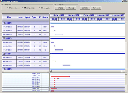 VARCHART XGantt被用于可視化TECHNOCLASS應(yīng)用程序中多種不同的圖表。例如,一個(gè)甘特圖對(duì)機(jī)器和它們的工作負(fù)載給出了明確的概述,使得計(jì)劃員能夠以機(jī)器負(fù)載的方式模擬不同的規(guī)劃策略:最小載荷(機(jī)器負(fù)載設(shè)為最小),最大載荷(機(jī)器負(fù)載設(shè)為最大)和順序負(fù)載(機(jī)器按照任務(wù)排入順序加載)。同時(shí),它允許選擇不同的調(diào)度方向:緊錢(ASAP)或緊后(JIT)調(diào)度。