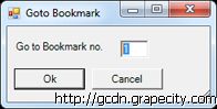 在文檔中輸入一些文本并插入一些書簽,然后選擇【Go To...】菜單,此時會彈出一個對話框,可以在對話框中輸入書簽的編號,如果該書簽存在點擊【OK】按鈕會自動跳轉(zhuǎn)到書簽所在的位置,實現(xiàn)代碼如下: