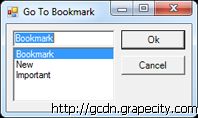 通過以上操作,我們創(chuàng)建了書簽并指定了書簽的名字。下面將在【Goto Bookmark】對話框中顯示所有書簽的名字,實現(xiàn)代碼如下: