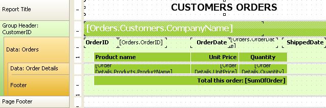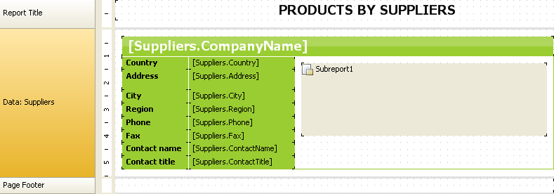 FastReport.NET是一個(gè)優(yōu)秀的報(bào)表生成器。有13個(gè)類型區(qū)域:報(bào)表標(biāo)題、報(bào)表摘要、頁(yè)眉、頁(yè)腳、列標(biāo)題、列頁(yè)腳、數(shù)據(jù)頭、數(shù)據(jù)、數(shù)據(jù)頁(yè)腳、組頁(yè)眉、組頁(yè)腳、子報(bào)表、覆蓋。另外,它還完全支持子報(bào)表。廣泛的類型區(qū)域使你可以方便地創(chuàng)建任何的報(bào)表:列表,主明細(xì),分組,多列,主詳細(xì)細(xì)節(jié)以及更多。