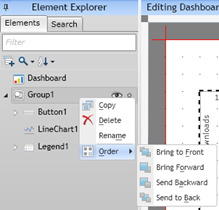 在儀表盤設計畫板上,你可以將兩個或兩個以上的元素/控件組合起來,這需要你熟練地應用某些分組操作。例如,你可以通過拖拽將一個組重新定位,或者用Z軸排序讓控件組向前或向后。這后一種用法類似于設計上的“圖層”概念。