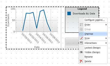 2.刪除這個組。刪除這個組并刪除了包含在內的控件。盡管在執行刪除操作時不需要確認,但你可以單擊Dundas Dashboard工具條的Undo撤銷刪除操作。