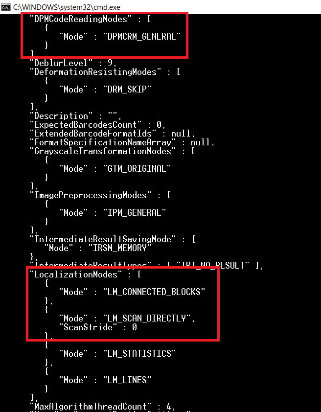 templateName = json_obj['ImageParameter']['Name']<font></font> json_obj['ImageParameter']['DPMCodeReadingModes'][0]['Mode'] = 'DPMCRM_GENERAL'<font></font> json_obj['ImageParameter']['LocalizationModes'][0]['Mode'] = 'LM_STATISTICS_MARKS'<font></font>