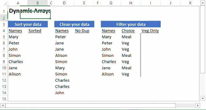 Excel 2019 推出了動態數組函數,用于簡化復雜計算公式:使用動態數組,返回值將自動“輸出”到相鄰單元格中(未使用的)。用戶只需編寫一個簡單的公式,而不是編寫復雜的數組公式就可解決多單元格問題。