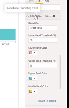 在格式窗格的條件格式卡中,可以設置波段閾值和顏色。