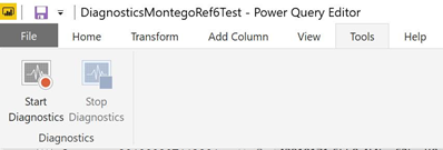 要開始診斷,請在Power Query編輯器中單擊功能區中的“工具”窗格,然后選擇“開始診斷”。要完成并匯總跟蹤,請按“停止診斷”。每當您開始診斷時,Power Query都將開始跟蹤您引起的所有評估。