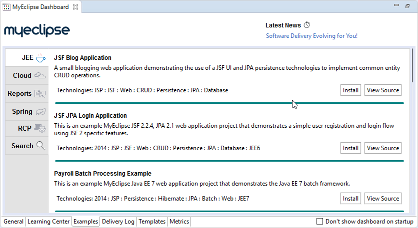 要了解給定MyEclipse版本中的新增功能,請單擊Delivery Log標簽。