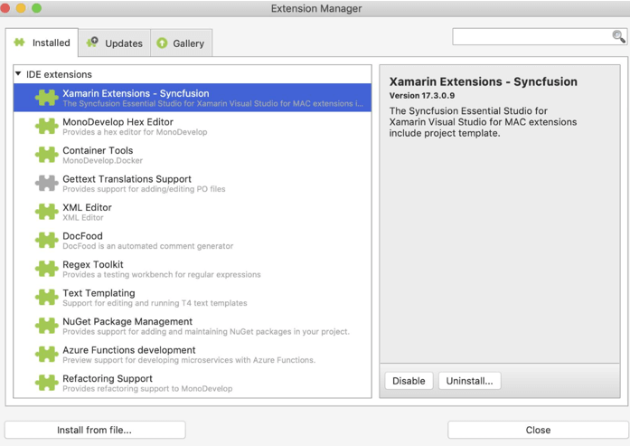 默認位置:{Documents}\{User}\{version}\Xamarin\Extension\Syncfusion Xamarin VS Mac Extensions.mpack