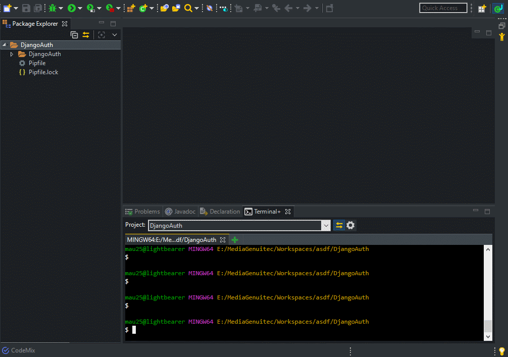 首先,在Eclipse中創(chuàng)建一個虛擬項目,并使用其終端執(zhí)行幾個命令來創(chuàng)建項目。