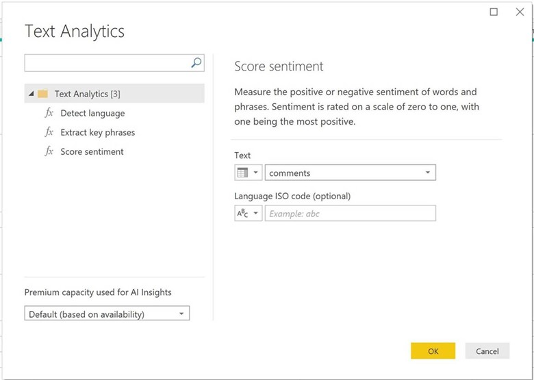文本分析和視覺模型是高級功能。在“設置”窗口中,您可以選擇在編輯報告時要使用的容量。當將報表發布到Premium工作區時,我們將使用與該工作區相關的容量進行數據刷新。文本分析和視覺功能無法在非高級工作區中刷新。