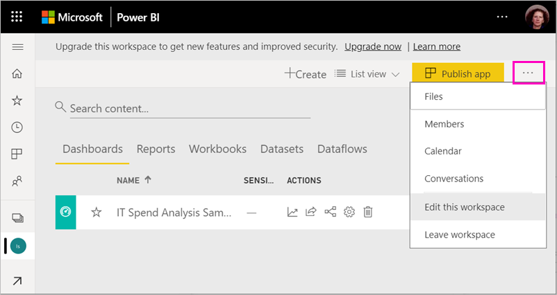 1、在工作區(qū)內(nèi)容列表中選擇“更多選項(xiàng)”(...) >“編輯此工作區(qū)”。