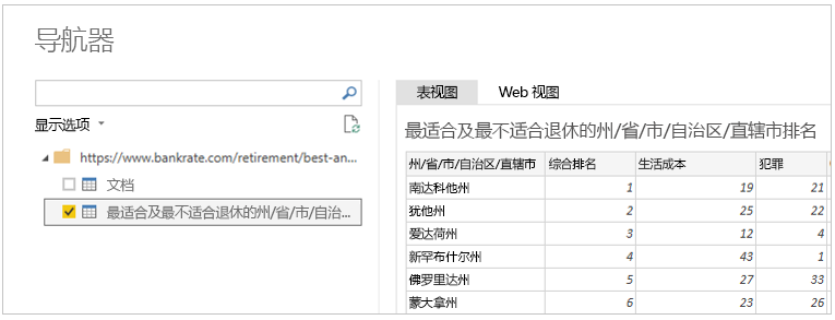 連接后,看到的第一個窗口將是“導航器”。“導航器”窗口顯示數據源的表或實體,選擇表或實體可預覽其內容。然后,可以立即導入所選的表或實體,也可以選擇“編輯”,在導入前轉換和清理數據。