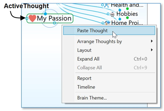 右鍵單擊Brain的任意空白區域,然后單擊上下文菜單上的“Paste Thoughts”。
