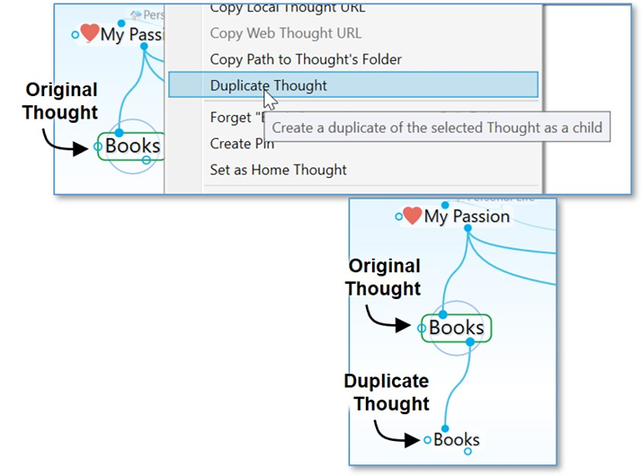 右鍵單擊要復制的思想,然后單擊上下文菜單上的“name of Thought”命令。