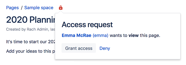 如果您導航到由于頁面限制而無法查看或編輯的頁面(例如,通過鏈接,邀請或頁面URL),則可以請求訪問該頁面。