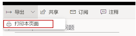 在Power BI服務中,選擇服務左上方的“導出”,然后選擇“打印本頁”打開打印對話框。