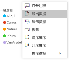 還可以選擇Power BI服務中的任意視覺對象上的省略號 >“導出數據”導出數據。導出后的數據可以保存為Microsoft Excel文件或 .CSV 文件。