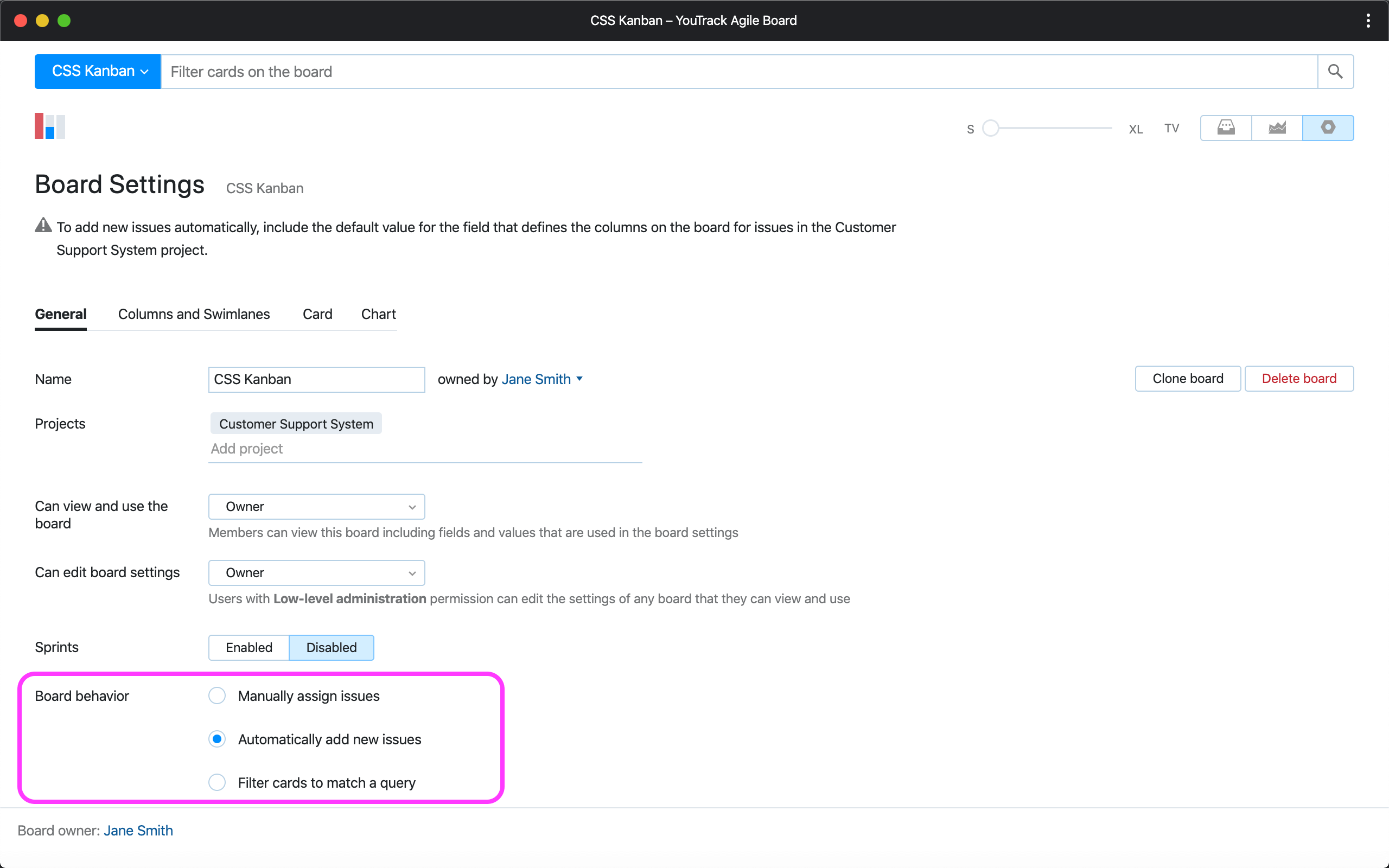 自動添加新問題的選項現在可用于不使用沖刺的敏捷板。這有助于遵循看板流程的團隊將所有問題集中管理。
