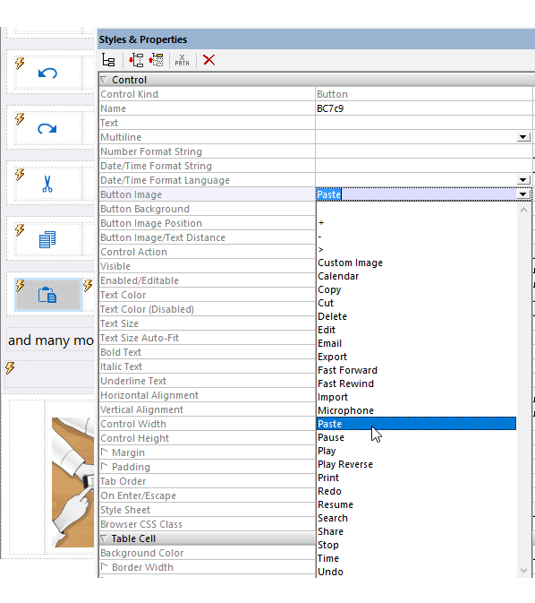 應(yīng)用程序設(shè)計人員可以將自定義圖標(biāo)和圖像添加到任何按鈕,并且Altova MobileTogether還附帶了一組現(xiàn)成的圖像,用于最常用的按鈕操作(例如電子郵件、快進(jìn)、日歷等)。