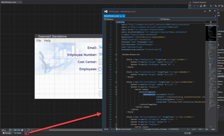 從設(shè)計(jì)器中彈出XAML編輯器(v16.4):現(xiàn)在,可以使用XAML標(biāo)簽旁邊的新彈出XAML按鈕輕松地將XAML設(shè)計(jì)器及其基礎(chǔ)XAML編輯器拆分為單獨(dú)的窗口。單擊時(shí),XAML設(shè)計(jì)器將最小化其附加的XAML標(biāo)簽,并針對(duì)XAML編輯器視圖彈出一個(gè)新窗口。您可以將此新窗口移動(dòng)到Visual Studio中的任何顯示或標(biāo)簽組。注意,仍然可以擴(kuò)展原始XAML視圖,但不管怎樣,同一個(gè)文件的所有XAML視圖將保持實(shí)時(shí)同步。