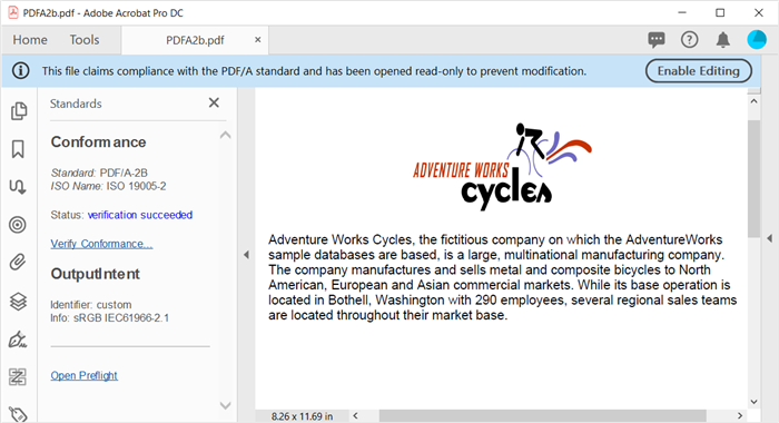 創建符合PDF/A-2b標準的文檔。