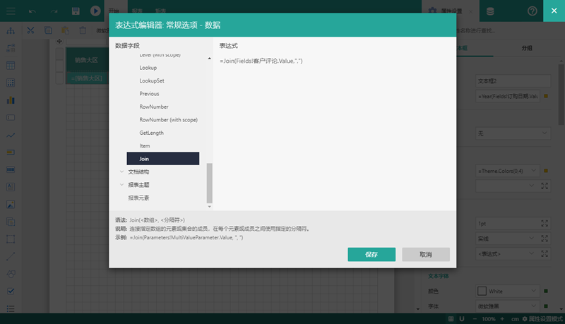新增文本和日期相關的函數15個,借助這些函數可以滿足更多的數據計算需要。同時,現在可以直接在表格和圖表等位置直接通過鼠標右鍵打開表達式編輯器,可以更便捷的進入表達式編寫對話框,不用在設計界面和屬性窗格之間來回切換。