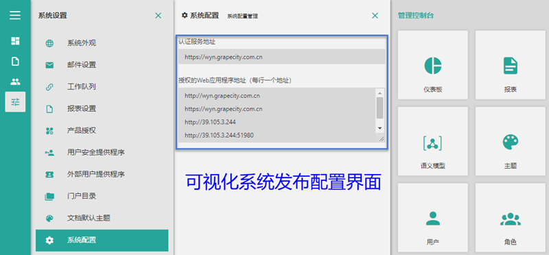 在Wyn Enterprise的后臺管理網站中,便能配置該程序對外發布的正式地址/網站,不再需要手動修改軟件配置文件,發布更加容易。