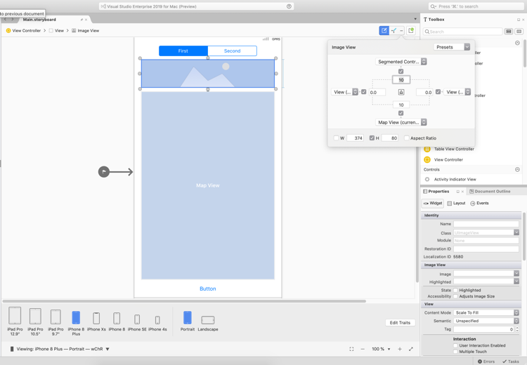 根據(jù)用戶的反饋,iOS設(shè)計(jì)人員正在引進(jìn)一種新的處理約束方法。在設(shè)計(jì)視圖中選擇可約束視圖時(shí),省略號(hào)現(xiàn)在將出現(xiàn)在Constraints Pinning模式選擇器旁邊的設(shè)計(jì)器工具欄中。要編輯所選視圖的約束,請(qǐng)單擊省略號(hào)以顯示彈出窗口:
