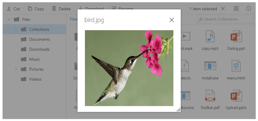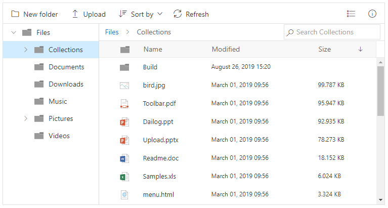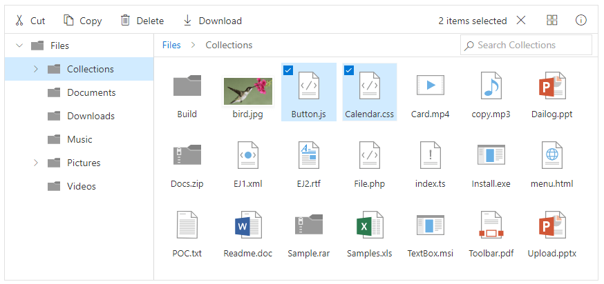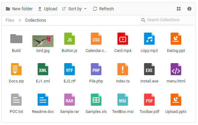 文件管理器控件執行所有常用的文件操作:創建、刪除、剪切、復制、粘貼、重命名、上傳和下載文件和文件夾。