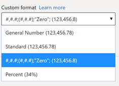 或者您可以使用給定的輸入框輸入自己的格式字符串。Power BI將支持大多數VBA樣式語法,但有一些例外。