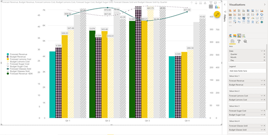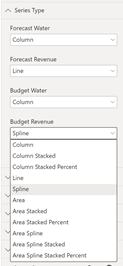 從這里開始,您可以在格式化窗格中進行大量的定制。您可以使用系列類型卡自定義可視類型,混合和匹配以獲得您正在尋找的可視布局。