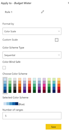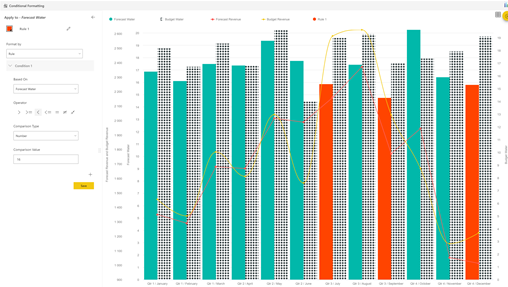 您還可以單擊鉛筆圖標以打開條件格式菜單,該菜單允許您編寫復雜的條件格式規則以應用于視覺中的任何系列。規則也將自動顯示在圖例中(如果需要,可以在格式化窗格中將其關閉)。