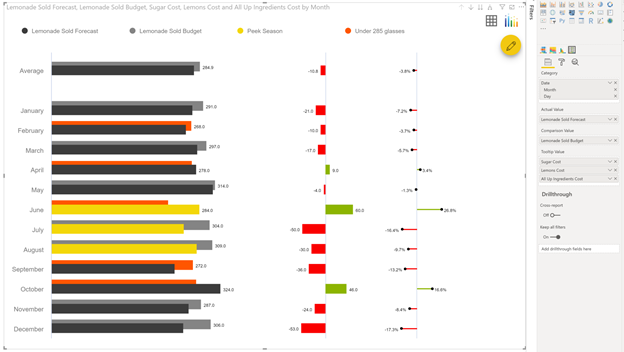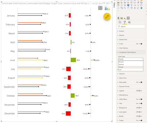 由于此可視化是xViz套件的一部分,所以它具有與多軸圖表相同的優秀格式化選項,包括功能強大的條件格式化選項和高級格式化控件。