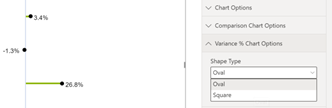 您也可以通過格式化窗格在橢圓和方形之間切換方差百分比圖表的樣式。