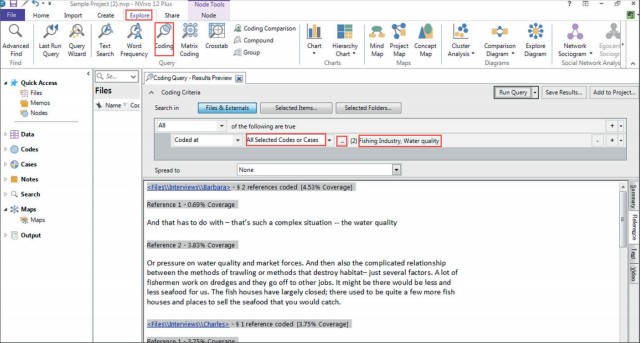 當你對數據中的模式進行編碼時,你可能已經在研究雜志上做了筆記。你們可能將從對文本的分析,轉向對代碼和它們之間關系的分析。在Ribbon中,選擇Explore選項卡并單擊Coding。