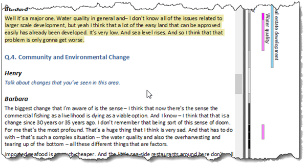不過您還可以采取進(jìn)一步的步驟來進(jìn)行更深入的挖掘。當(dāng)NVivo鏈接到原始數(shù)據(jù)源時,很容易在完整的上下文中查看到這些重疊數(shù)據(jù)的區(qū)域,從而看到語句上的細(xì)微差別。但是您也可以使用編碼條紋進(jìn)一步執(zhí)行此過程。