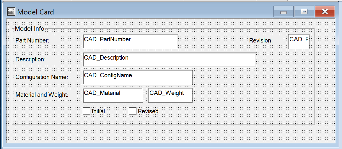 有關(guān)數(shù)據(jù)卡示例,請參見下文。所有變量都映射到SolidWorks自定義屬性: