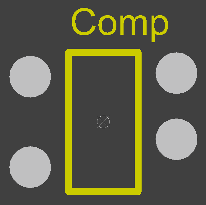 在“項(xiàng)目”>“庫(kù)”>“添加新的PCB庫(kù)”中,在自己的庫(kù)中創(chuàng)建PCB的封裝。使用“主頁(yè)”>“放置”功能區(qū)中的功能形成覆蓋區(qū)。足跡將包含形狀,填充物和文本以及其他項(xiàng)目。足跡也可以帶有高度。出于示例目的,這是一個(gè)“非描述性”的四引腳封裝: