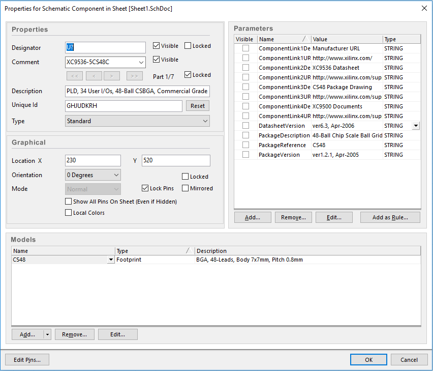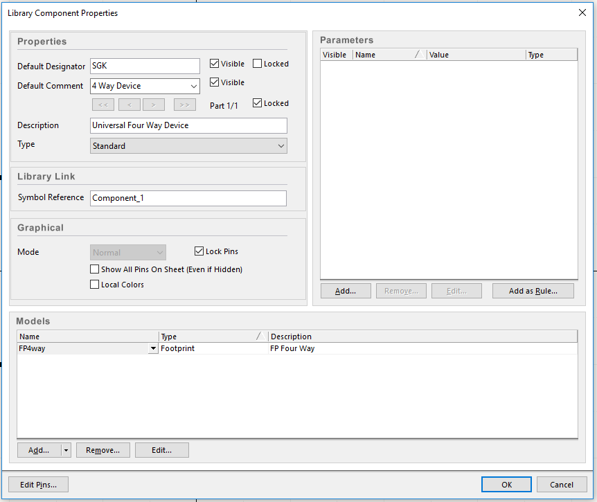 圍繞原理圖的符號(hào)創(chuàng)建一個(gè)組件。使用上面的示例,在打開(kāi)其組件屬性時(shí),我們將看到該組件的屬性,參數(shù)和模型: