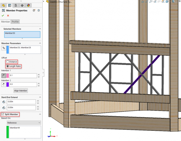 說到次要成員,那里也有改進。現在,您可以定義平面或面與兩個主要成員相交的成員,甚至可以僅定義到兩個主要成員兩端的距離或長度比。另外,現在您可以直接在物業經理中拆分這些成員。這就是使我能夠進行這種復雜的欄桿設計而無需創建任何草圖幾何圖形的原因。