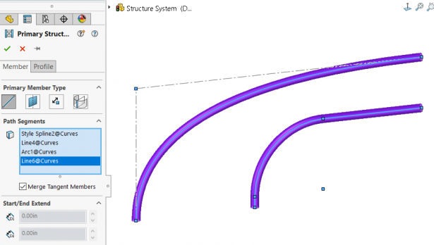最終,我們可以使用樣條線來創建可以修剪和覆蓋的梁,就像線性梁一樣,將其放置在切割清單中。它甚至不限于草繪的樣條線。由邊緣或相交的面和平面創建的非線性幾何也將起作用。另外,作為一個附加好處,在直管的中部彎曲部分的情況下,我們還可以將由多個草圖實體創建的單獨的梁合并為一個主體。