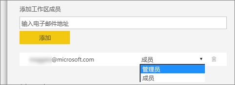 6、添加你要允許訪問工作區的用戶的電子郵件地址,然后選擇“添加”。注意:無法添加組別名,只能添加單個用戶別名。