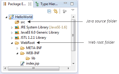 Java源文件夾和webroot文件夾的默認名稱由Web項目模板定義。