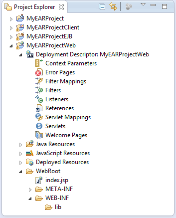 WEB-INF/lib | WEB-INF的子文件夾,包含項目的.JAR文件 |
