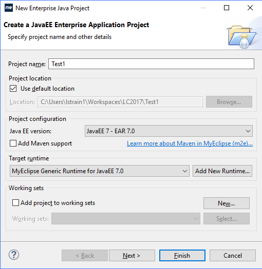 注意:如果出現Migration向導,單擊Next>單擊Finish,將項目遷移到MyEclipse版本。